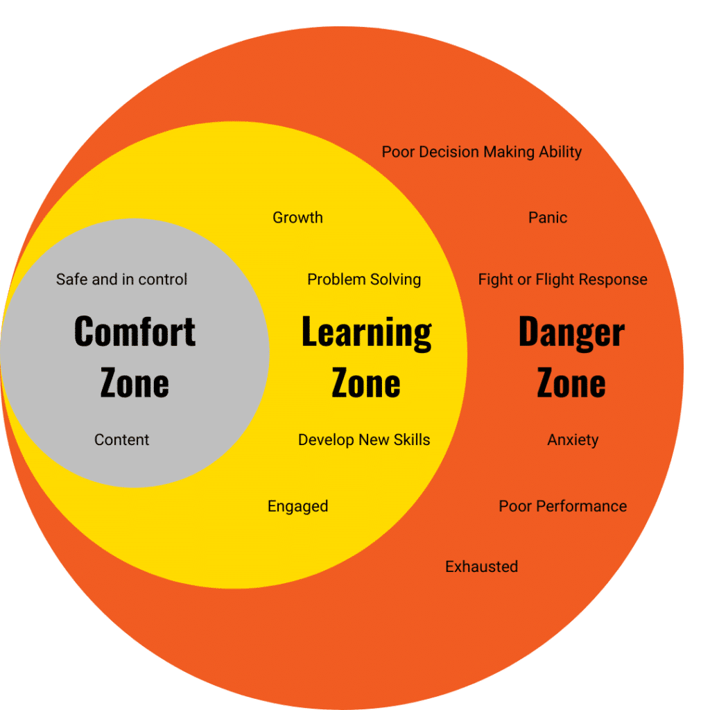 There’s a graphic I love that, though there are many variations, features three concentric circles. On the inside is typically the “comfort zone.” On the outside is the “danger zone” and in between is the “learning zone.”